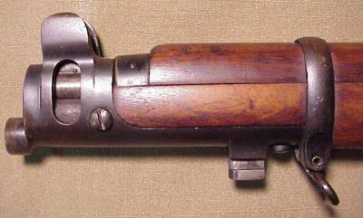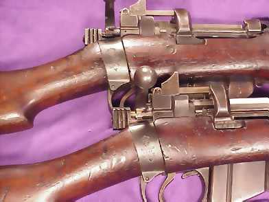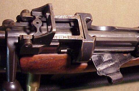 Early design aperture style receiver mounted "Battle Sight" & folding slide micrometer sight. Also note the magazine cut off.